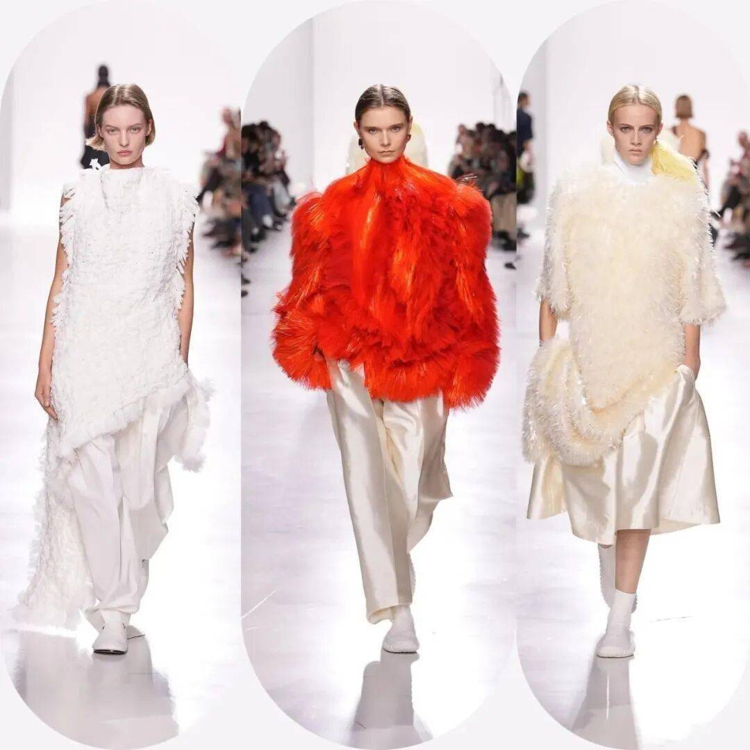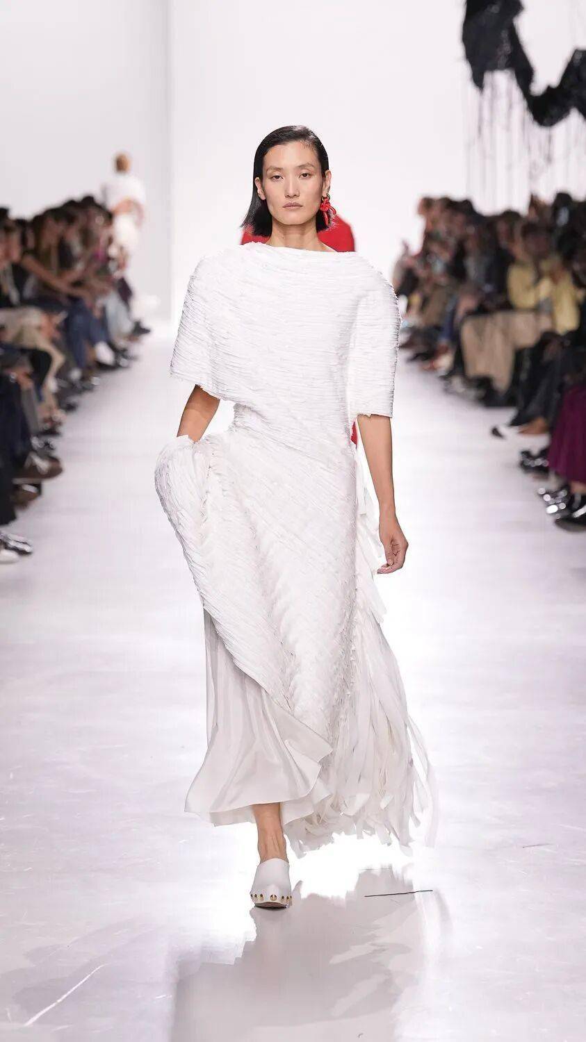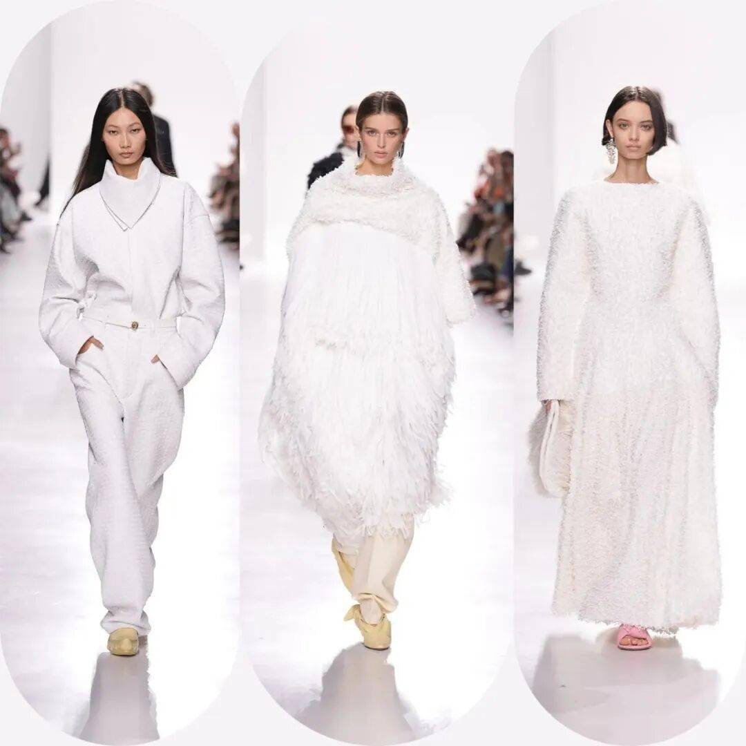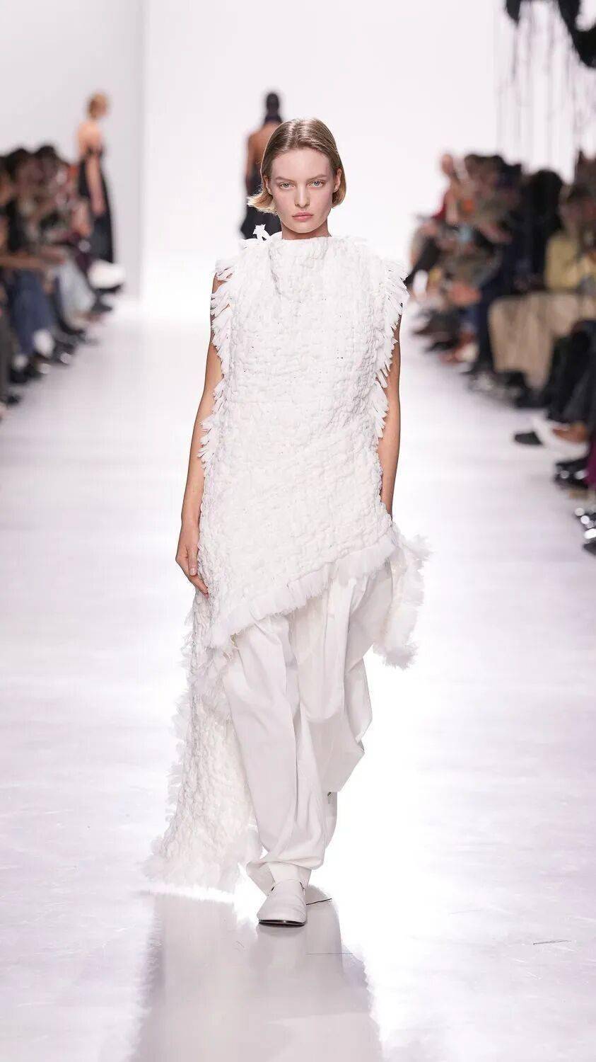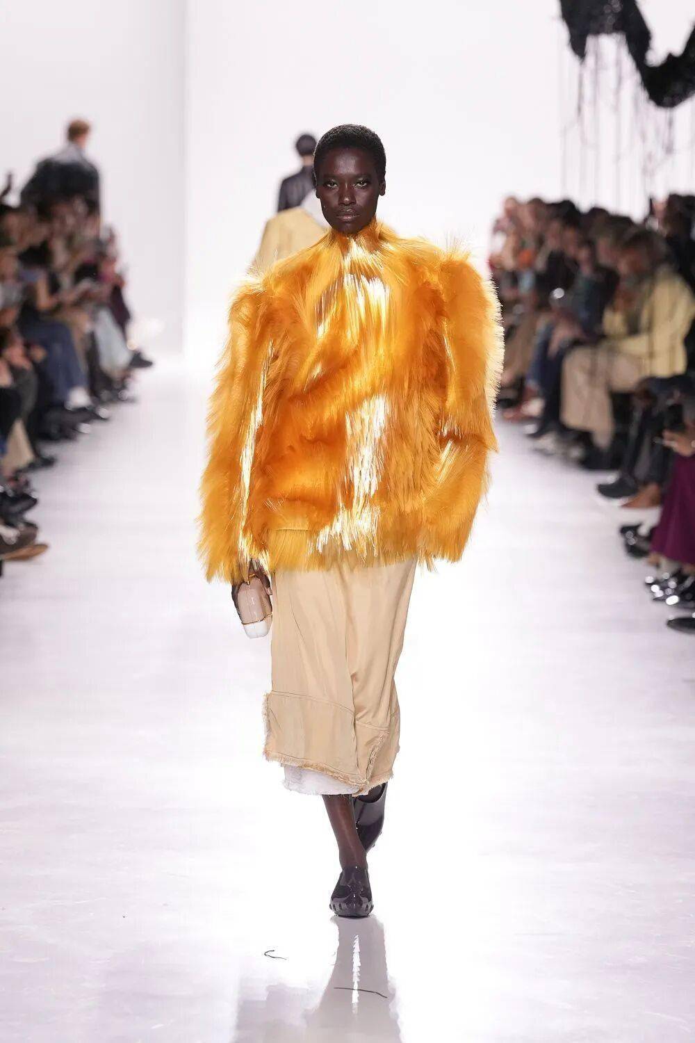 Bottega Veneta本季的工艺还体现在那些略显厚重的流苏连衣裙和羽毛外套等单品设计中