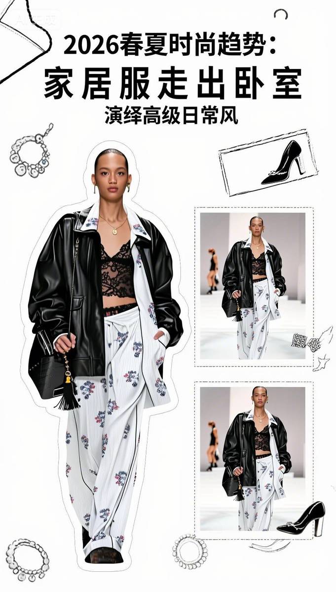 2026春夏家居服趋势:高级日常风的“破圈”进化论 2026春夏,家居服的设计逻辑正从“卧室专属”转向“多元场景适配”,核心是用“高级感”消解“家居感”的随意性,用“日常性”平衡“时尚感”的距离感,最终实现“舒适与体面”的统一。以下从材质、设计、风格与场景四个维度,拆解这一趋势的具体呈现: 一、材质:从“实用”到“质感+实用”的双重升级 材质是“高级日常风”的基础,2026春夏家居服在保留舒适感的同时,更强调质感与可持续性,常见材质及特点如下: 材质类型 核心优势 适配场景 有机棉(加捻工艺) 比普通棉更柔软,且通过有机认证(无化学残留) 远程工作、日常居家 再生莫代尔(混纺蚕丝) 融合莫代尔的垂坠感与蚕丝的光泽感 居家社交、短途出行 棉麻混纺(高支数) 解决纯麻的粗糙感,保留麻的透气性与棉的柔软度 夏季高温、远程工作 二、设计:“减法”中的高级感 高级日常风的核心是**“不费力的时尚”**,因此设计上以“简约”为底色,通过细节提升质感: 1. 色调:中性色为主,低饱和度为辅 基础色:米白、浅灰、驼色(接近肤色,视觉上更柔和); 点缀色:低饱和度的莫兰迪色(如浅蓝、淡粉、豆绿),避免过于跳跃的色彩破坏“日常”感。 2. 剪裁:宽松但有轮廓 拒绝“布袋款”:采用H型、茧型等有轮廓的剪裁,既保留家居服的舒适感,又避免显得拖沓; 强调“比例”:比如长款家居裙加入腰带,提升腰线;家居上衣采用短款设计,搭配高腰裤,优化身材比例。 3. 细节:“小而精”的点睛之笔 刺绣:在领口、袖口或衣摆处加入小幅刺绣(如 floral 图案、几何纹样),增加精致感; 蕾丝/撞色边:用蕾丝装饰领口或裤脚,或用撞色缝线勾勒衣身轮廓,避免单调; 可拆卸部件:比如家居外套的帽子、家居裙的腰带,可根据场景调整风格(如去掉帽子更正式,加上腰带更时尚)。 三、风格:家居与外穿的“边界消解” 2026春夏家居服的关键趋势是**“走出卧室”**,因此设计上融入了大量外穿元素,模糊“家居”与“外穿”的界限: 外穿元素 应用场景 效果 西装领 家居上衣、家居外套 增加通勤感,适合远程工作或居家办公 翻袖设计 家居衬衫、家居T恤 卷起袖子后更显利落,适合夏季或社交场景 口袋设计 家居裤、家居外套 增加实用性(可放手机、钥匙),同时提升外穿的“日常感” 腰带/腰绳 家居裙、家居裤 调整松紧,同时作为装饰,将家居服转化为连衣裙或休闲裤 四、场景:从“卧室”到“多元生活” 高级日常风的终极目标是适配多种生活场景,因此设计上考虑了不同场景的需求: 1. 远程工作/居家办公 搭配方案:舒适的有机棉家居上衣(如西装领设计)+ 高支数棉麻混纺裤(宽松但有轮廓)+ 拖鞋/小白鞋; 特点:既满足长时间坐着的舒适感,又符合“视频会议”的体面需求。 2. 居家社交(如朋友来访、家庭聚会) 搭配方案:真丝家居裙(带刺绣或蕾丝细节)+ 拖鞋/小白鞋; 特点:既有家居服的放松感,又通过材质和细节提升“仪式感”。 3. 短途出行(如买菜、取快递、散步) 搭配方案:家居外套(棉麻混纺)+ 牛仔裤 + 运动鞋; 特点:家居外套的舒适感与牛仔裤的休闲感结合,适合轻松的户外场景。 三、总结:高级日常风的本质 2026春夏家居服的“走出卧室”趋势,本质上是消费者需求的升级——人们不再满足于“只适合卧室”的家居服,而是需要“舒适、时尚、多场景适配”的服装。高级日常风的核心是平衡:平衡舒适与时尚,平衡家居与外穿,平衡实用与质感。这种趋势不仅符合后疫情时代的生活方式,也体现了时尚界对“日常美学”的重视。
