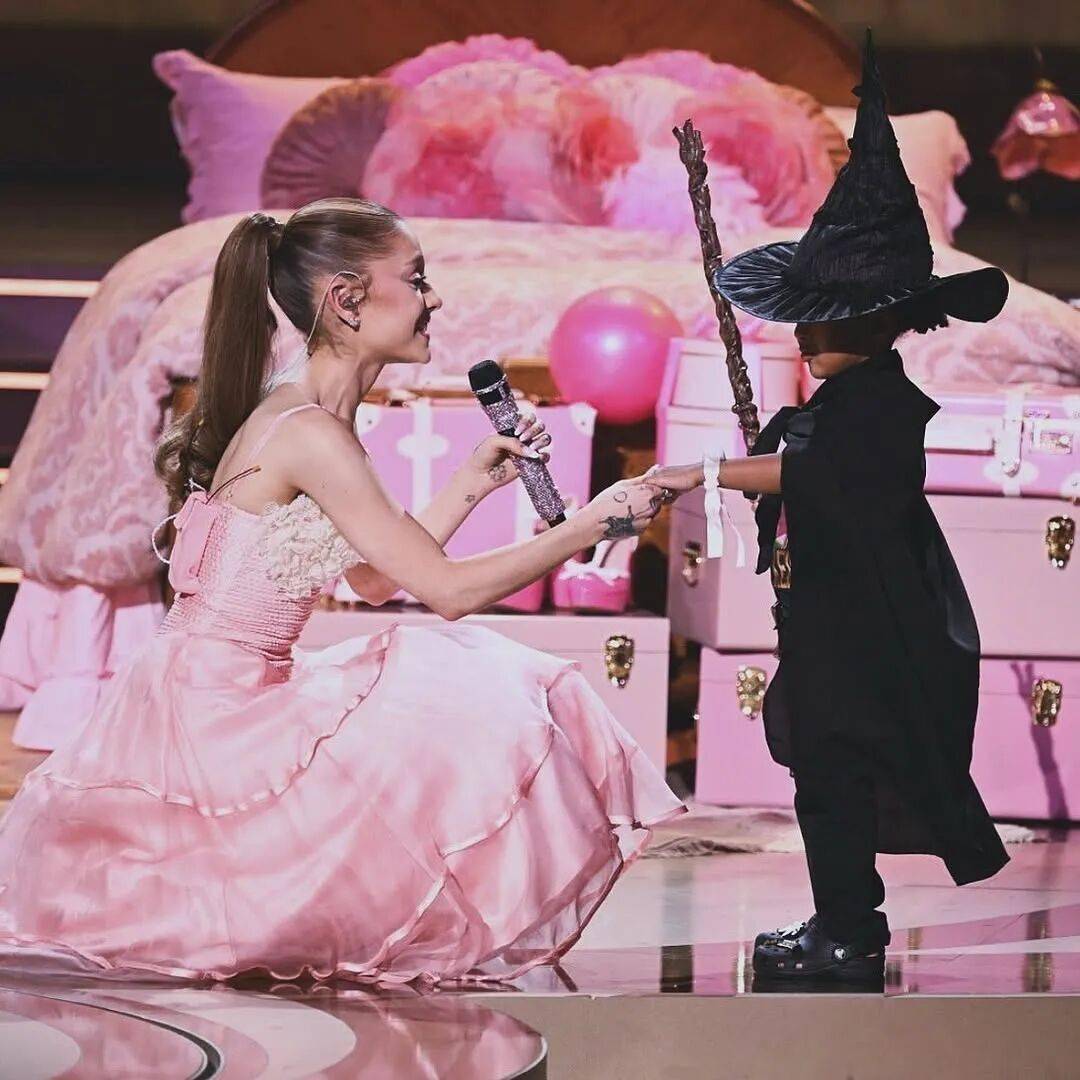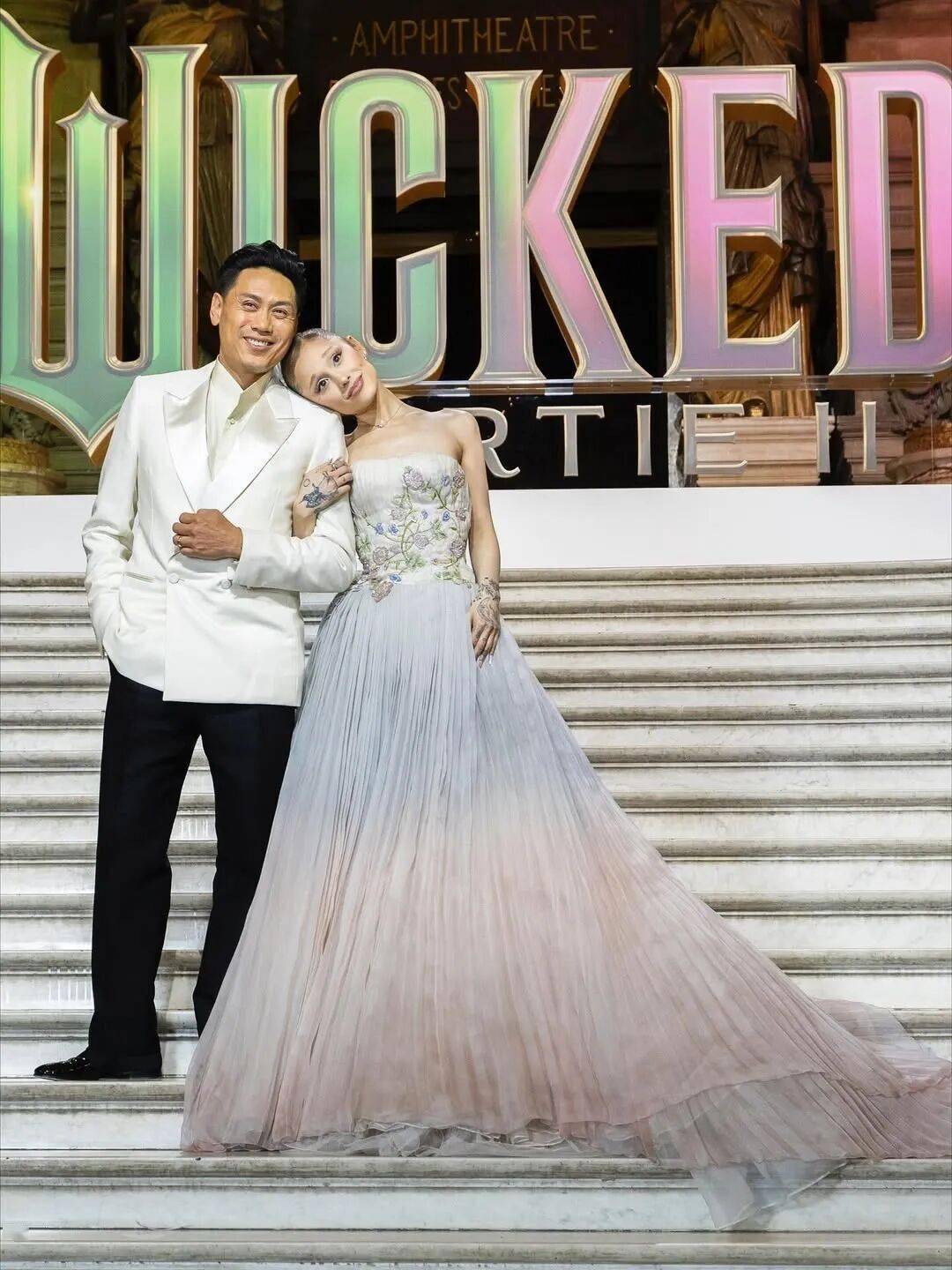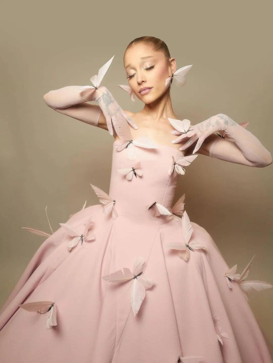 在为电影特别制作的电视节目《Wicked: One Wonderful Night》上,她身穿香港设计师Robert Wun特别订制的粉色蝴蝶礼服,仿佛将整个梦幻之境都穿在了身上。