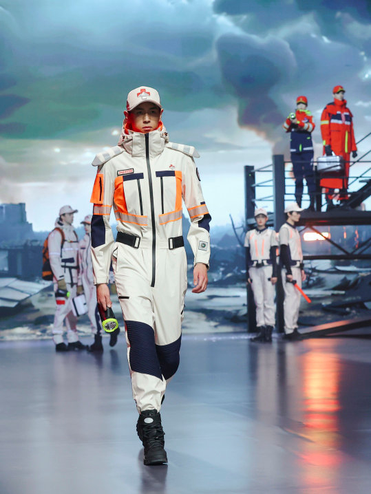 迪尚集团携旗下迪尚工装亮相时装周,采用科技环保面料、时尚设计与精致版型,致敬劳动者,引领工装行业新风尚;