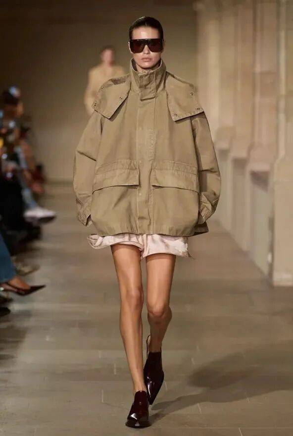 最引人注目的潮流趋势之一是高立领,它自秋季以来一直流行,并将平稳过渡到2026年春夏。Balenciaga、Stella McCartney、Victoria Beckham 和Magda Butrym 展示了各自的变化——从酒红色皮革到绒面革和厚棉布。立领已证明其多功能性——白天实用,晚上优雅,它将成为下一季基本款衣橱的关键元素。