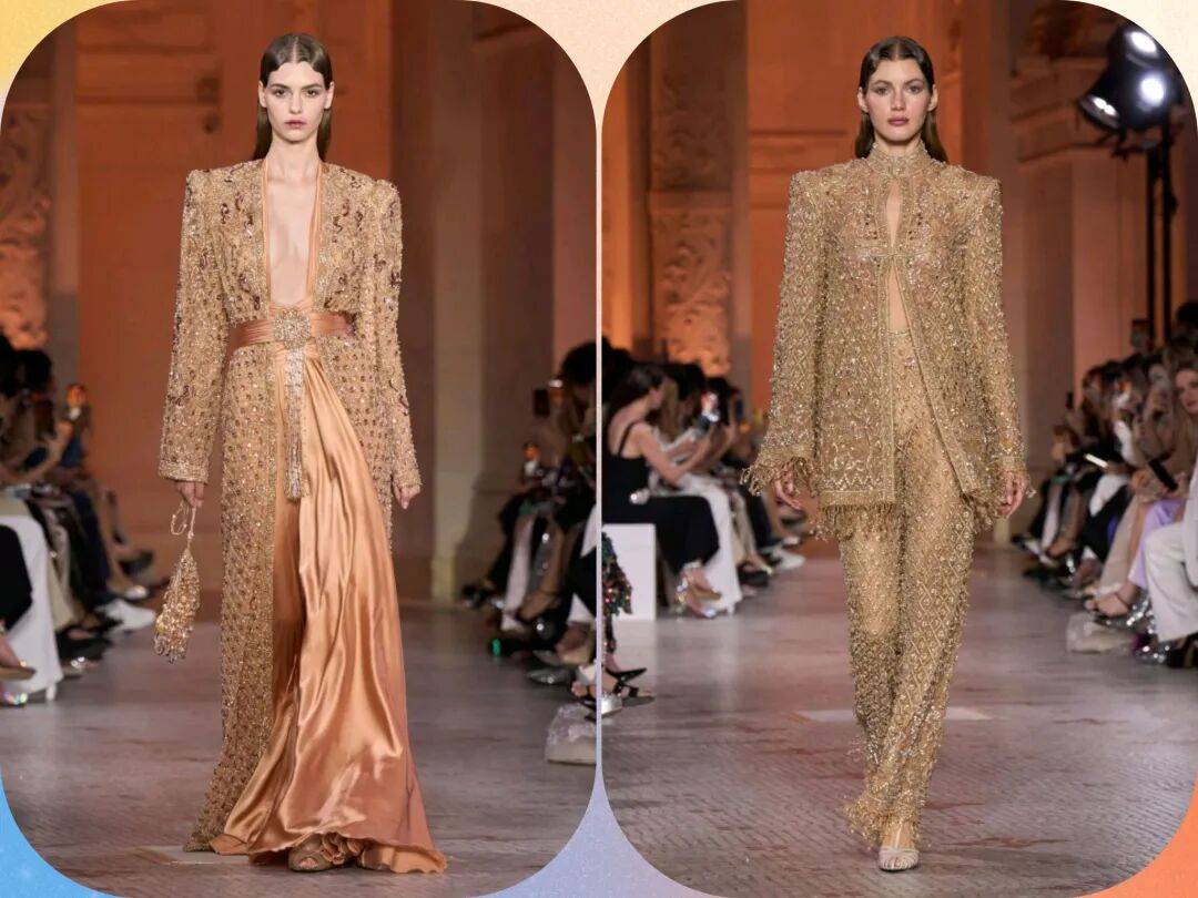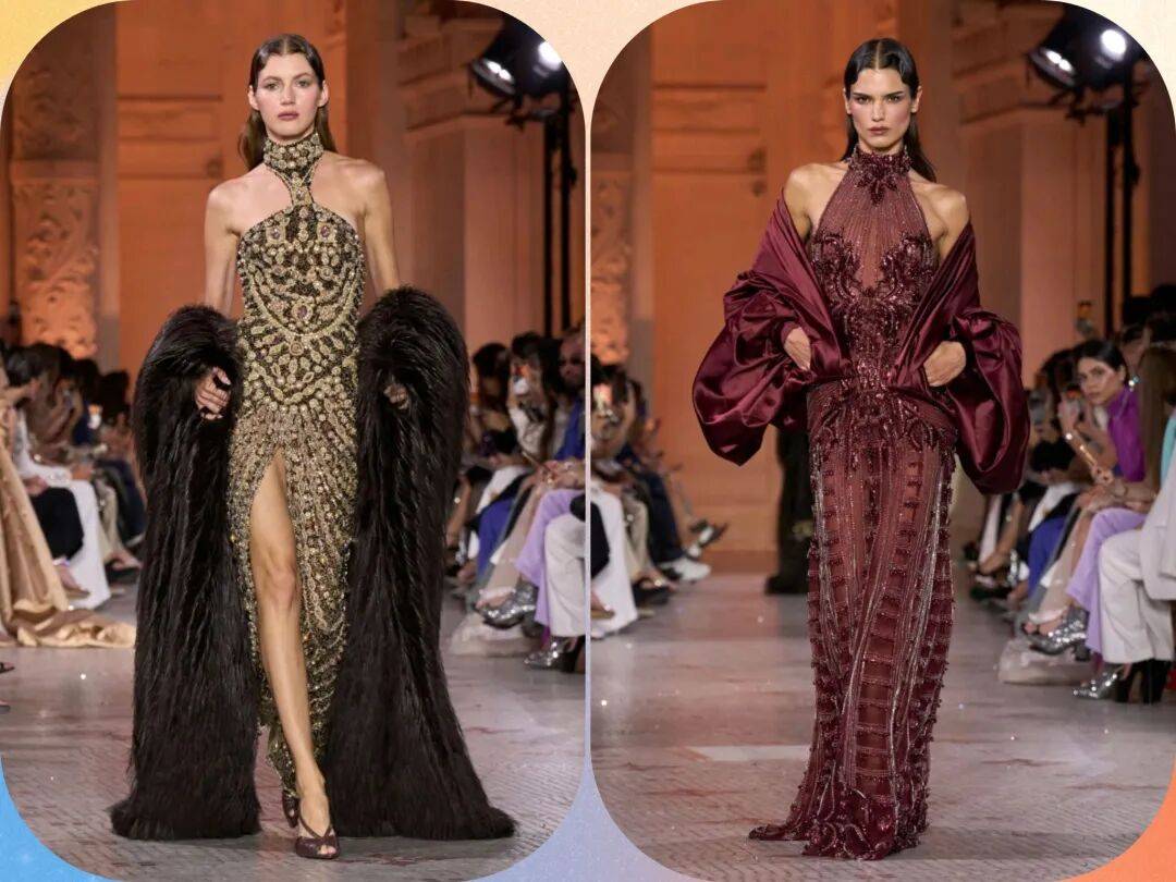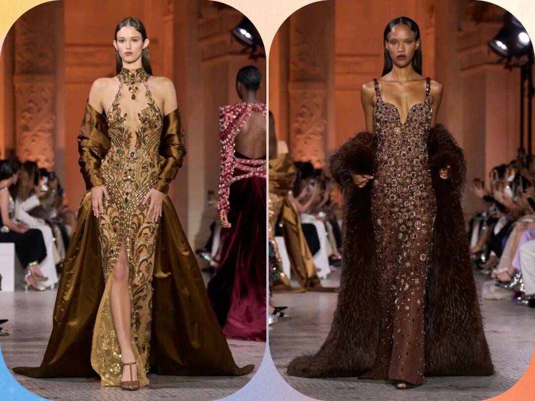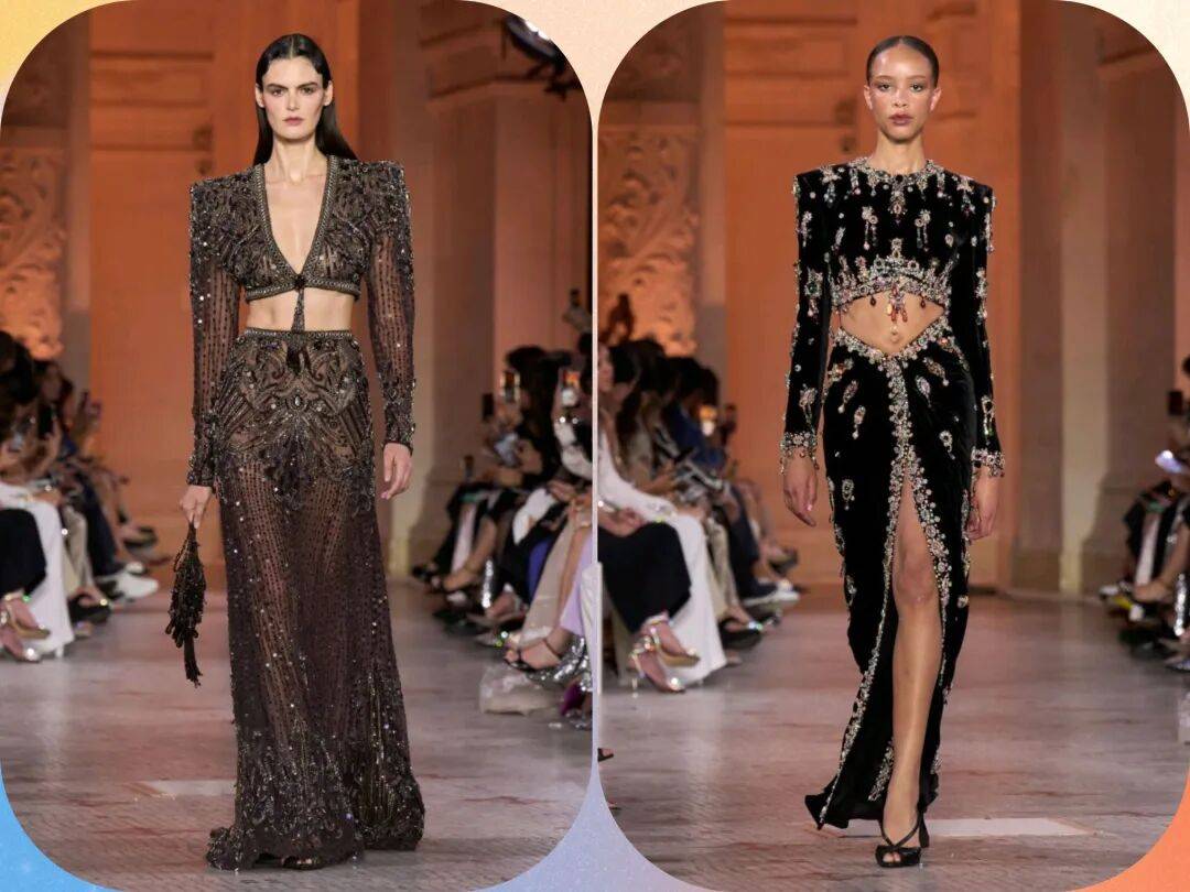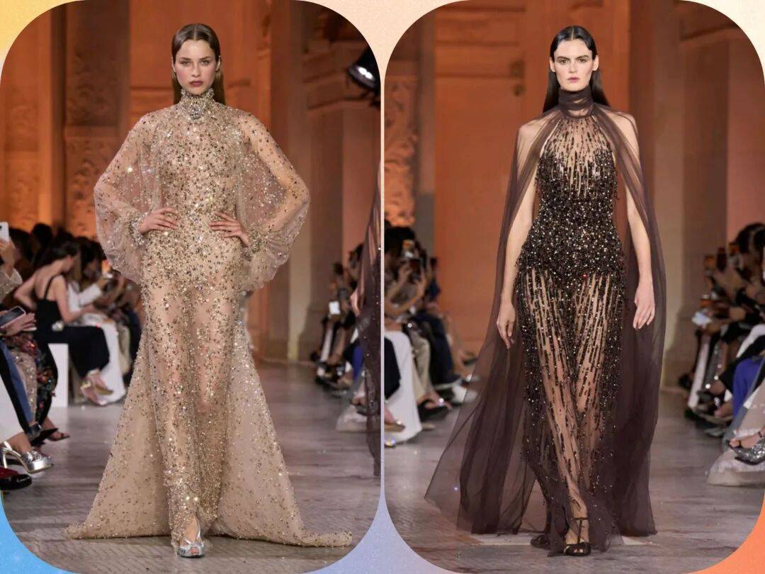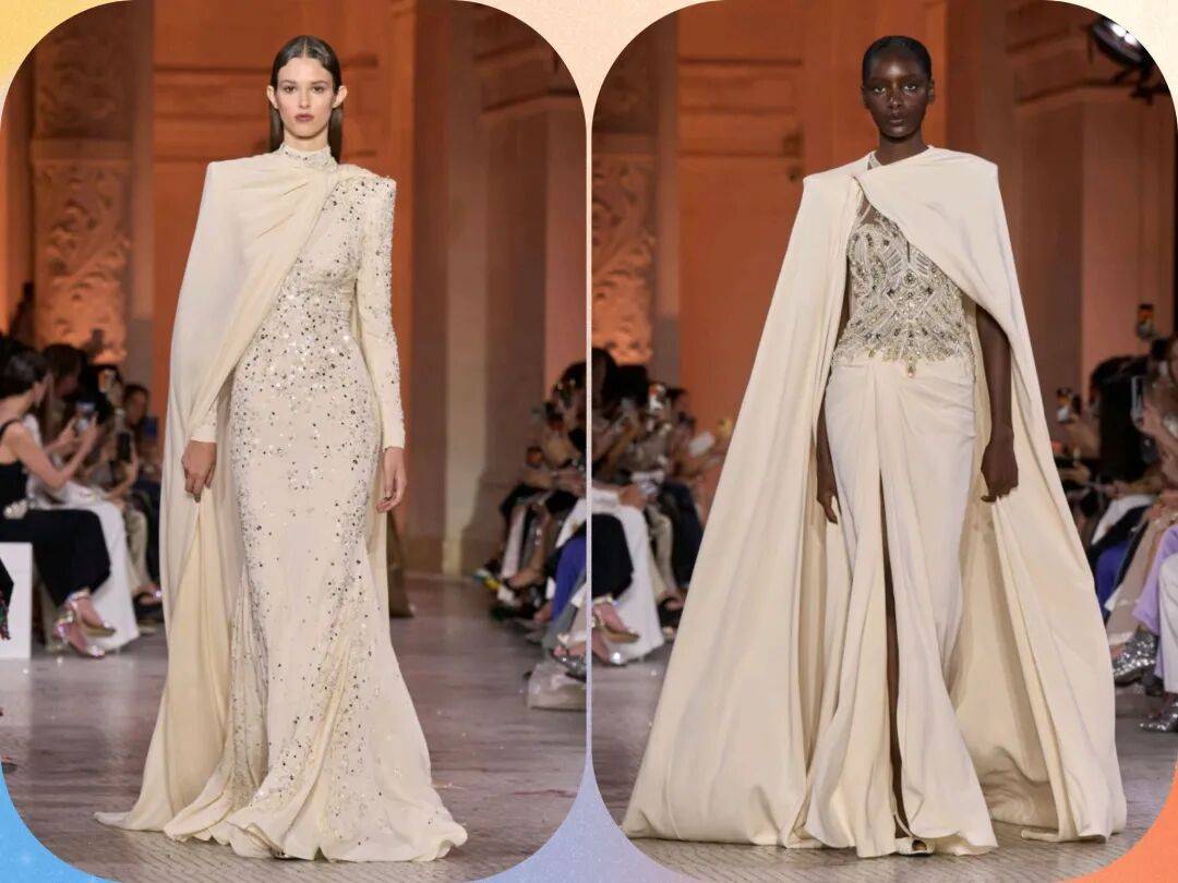 Zuhair Murad 2025秋冬高定,在星空元素和轻薄材质、天鹅绒等设计中,在珠光亮片等元素中也多了一些星空元素的浪漫优雅。