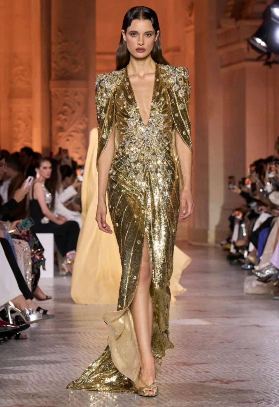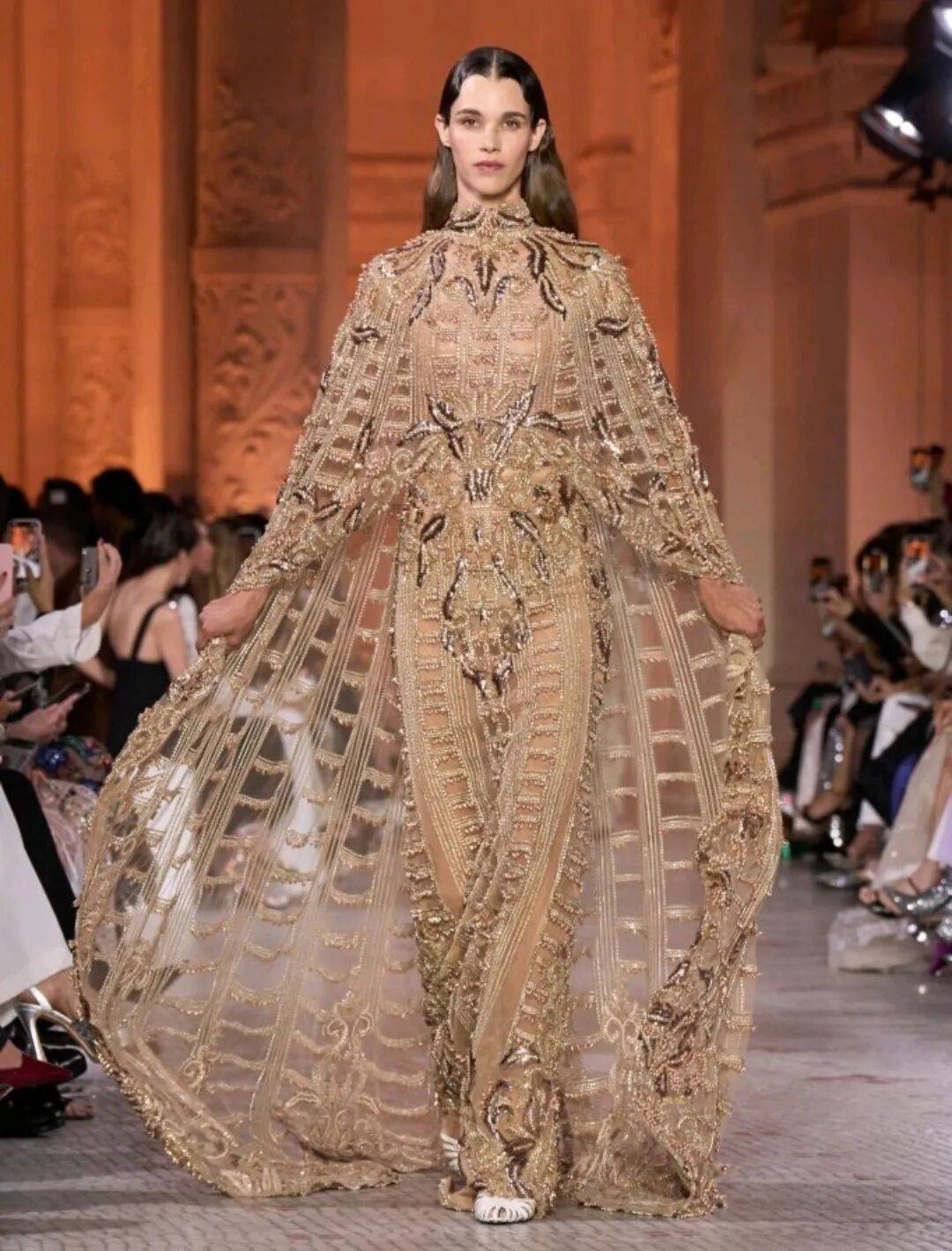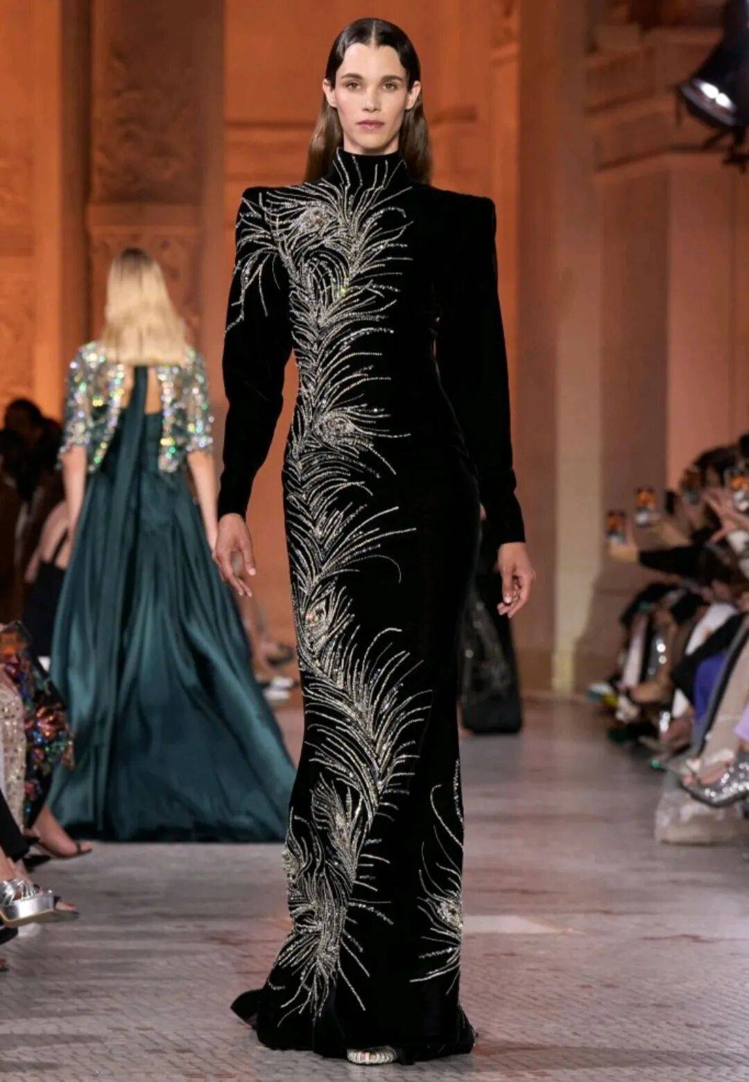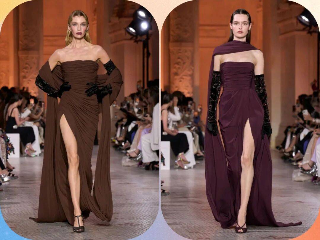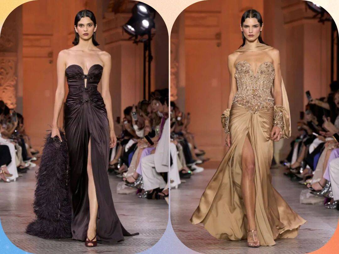 Zuhair Murad 2025秋冬高定,在星空元素和轻薄材质、天鹅绒等设计中,在珠光亮片等元素中也多了一些星空元素的浪漫优雅。