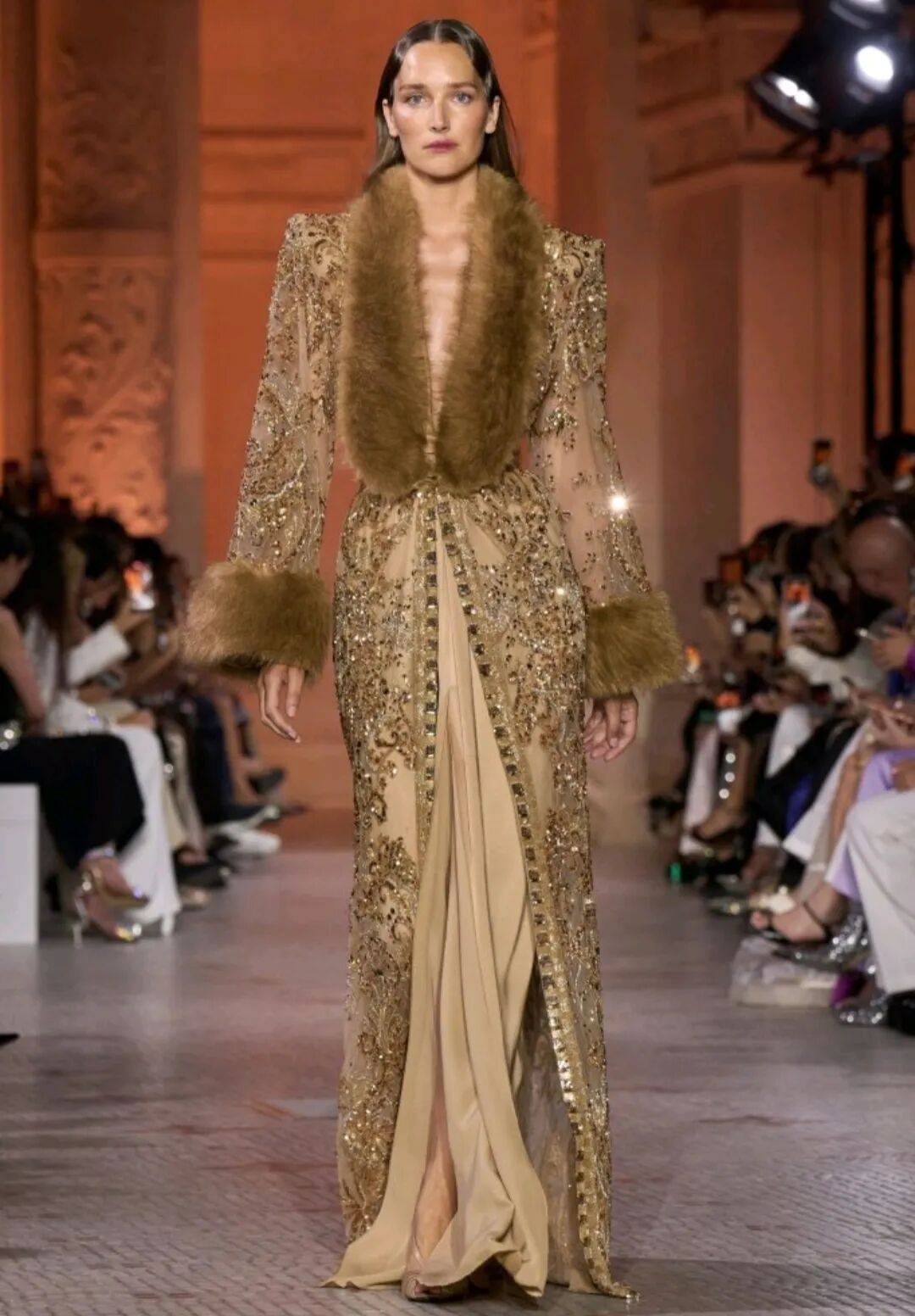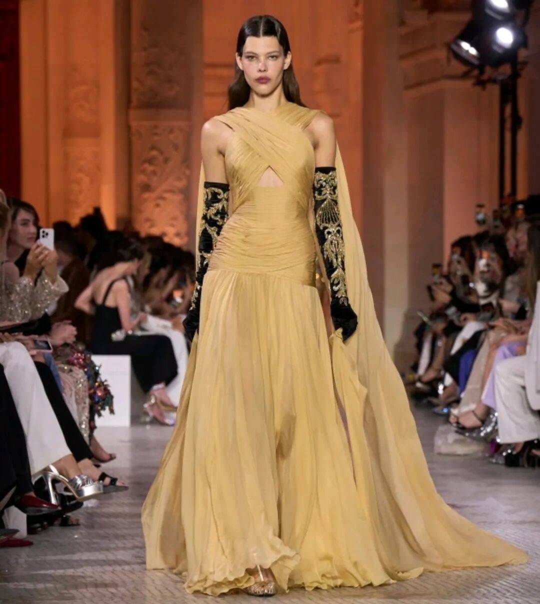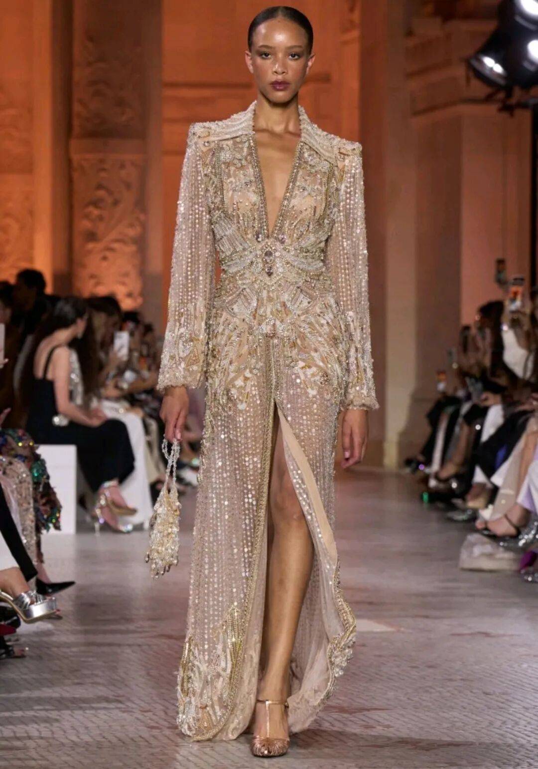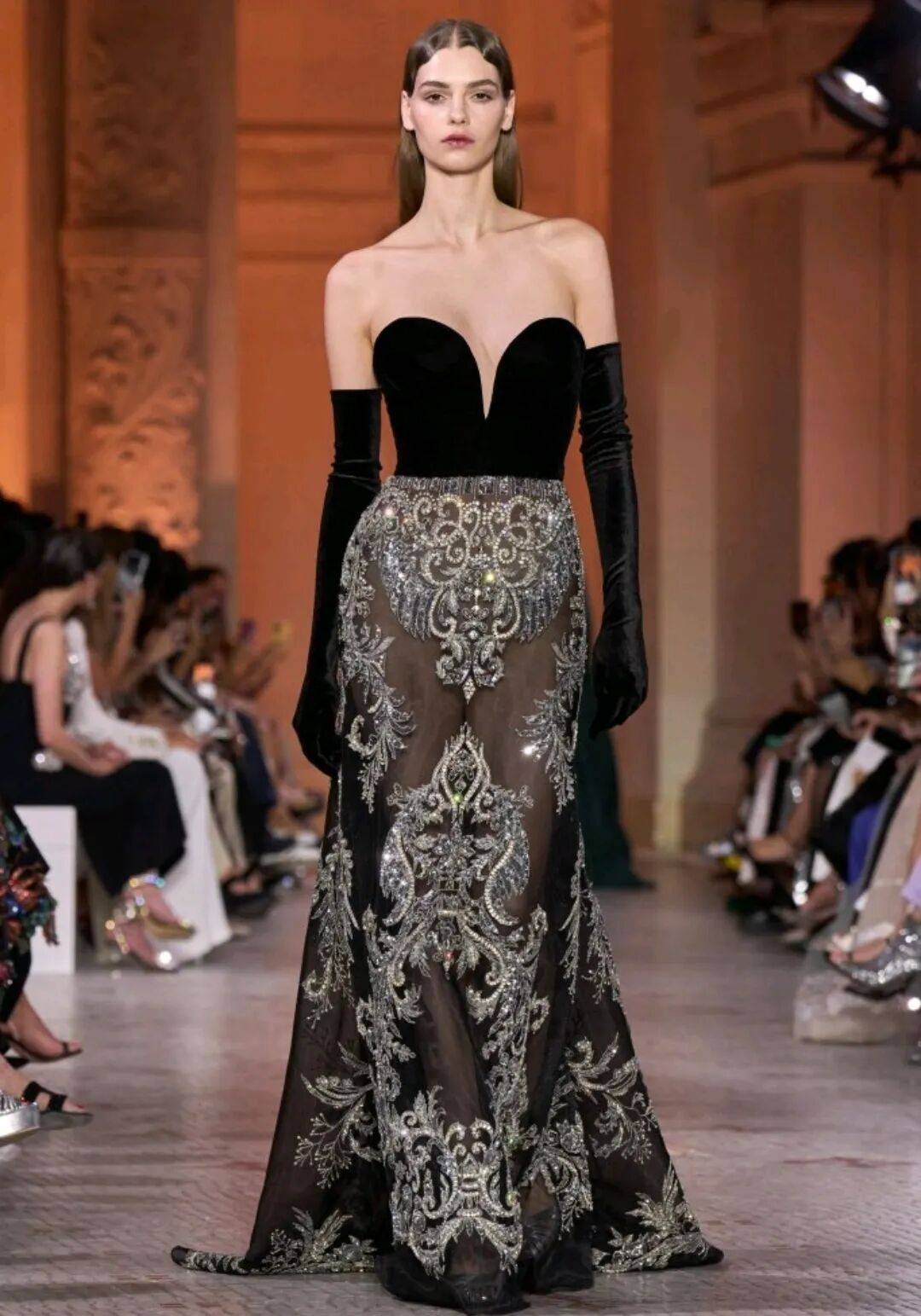 Zuhair Murad 2025秋冬高定,在星空元素和轻薄材质、天鹅绒等设计中,在珠光亮片等元素中也多了一些星空元素的浪漫优雅。