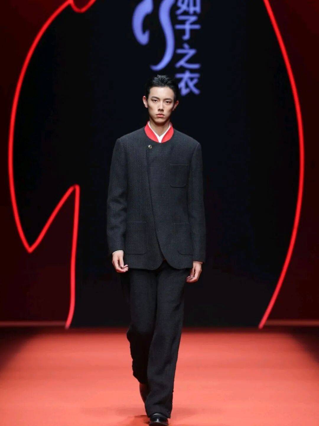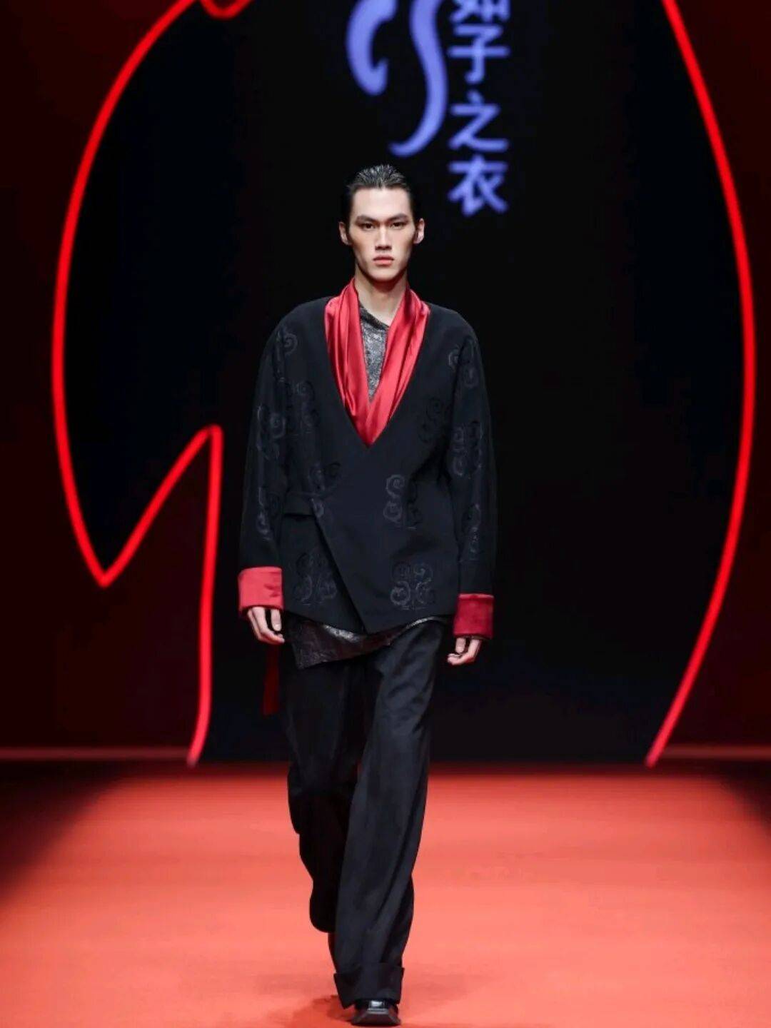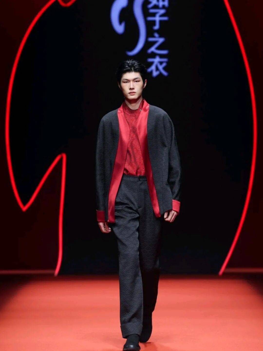 **在一些男装之中,也在黑色、红色等这些色彩的结合中,也在色彩的差异中让男装也在中式气质中多了优雅帅气。