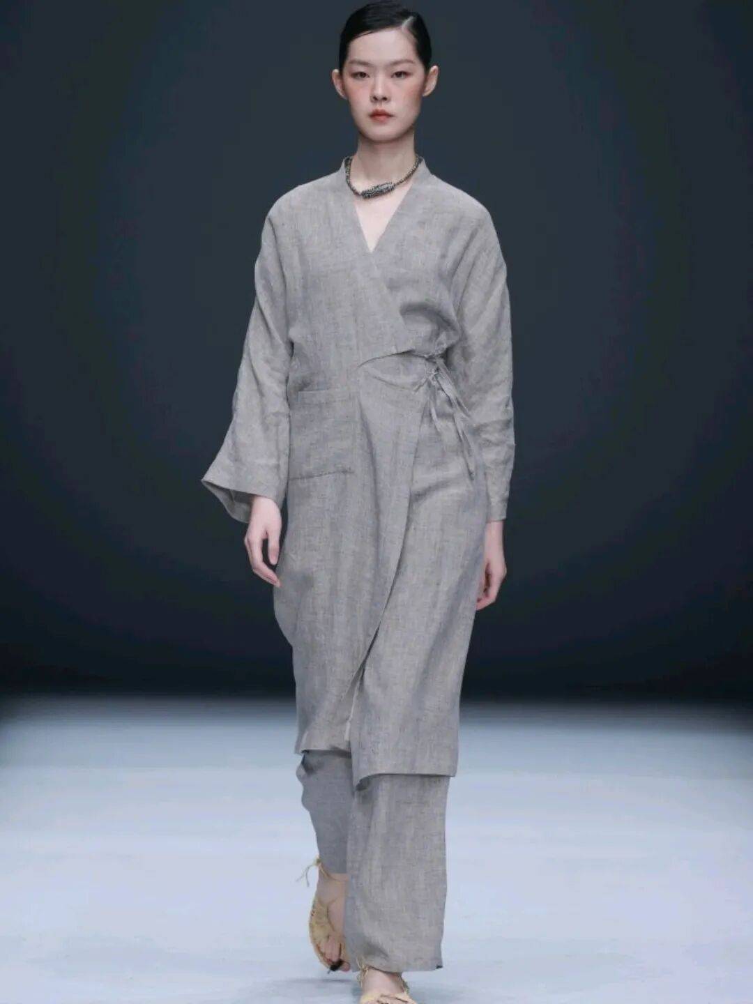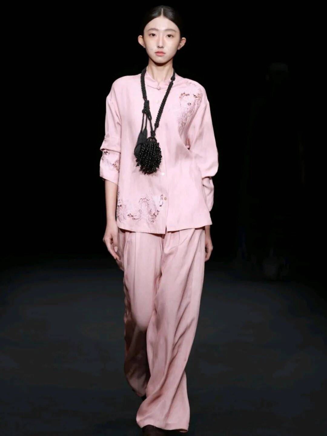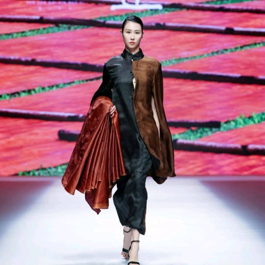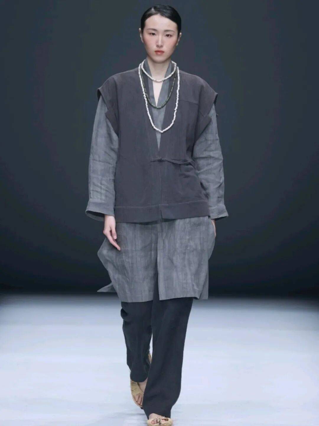 **中式的服装结合不同色彩、不同面料等设计的结合,在拼接等设计之中形成了不对称的视觉感。