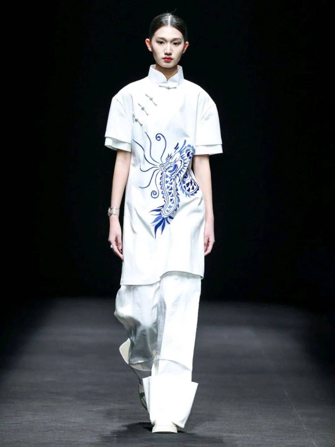 **在白色颜色的干净低调和优雅中,纯色的简约在和一些其他鲜艳色调的装饰中,让上衣也在中式元素中,更多不少的国风韵味。
