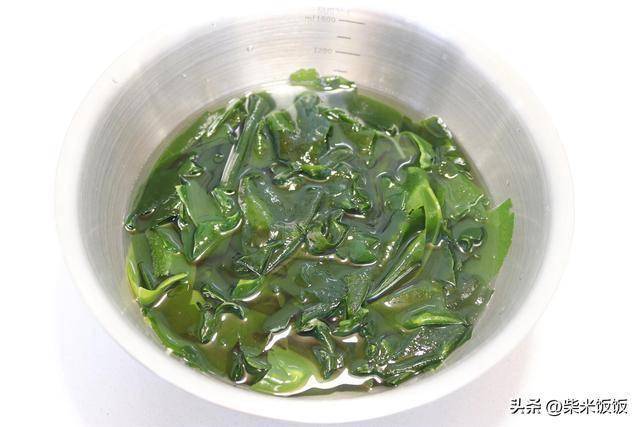 【具体做法】 1,干裙带菜温水浸泡5分钟,或者凉水浸泡10分钟,完全泡发就好了。