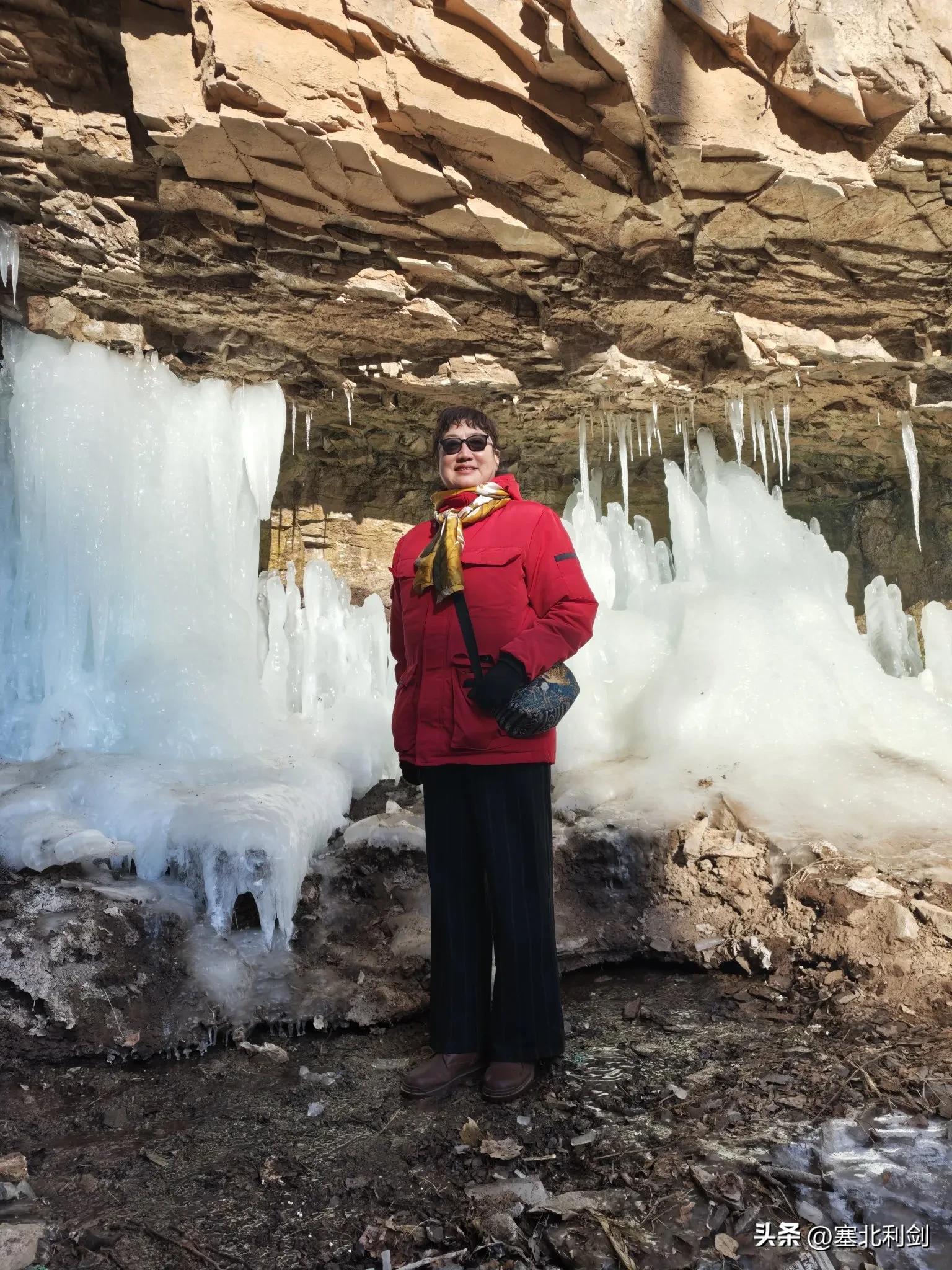 去滴水崖干什么?看冰瀑。冰,作为自然界中水的一种固态形式,不仅具有独特的物理特性,还在文化和艺术中被赋予了丰富的寓意,具有纯洁无瑕、清新脱俗、道德高洁、不畏严寒等象征意义;冰,还是幸运的载体,象征着美好的开端和幸运的到来。所以,我们宣化战友军嫂快乐游小分队,把新年第一游选在了滴水崖。