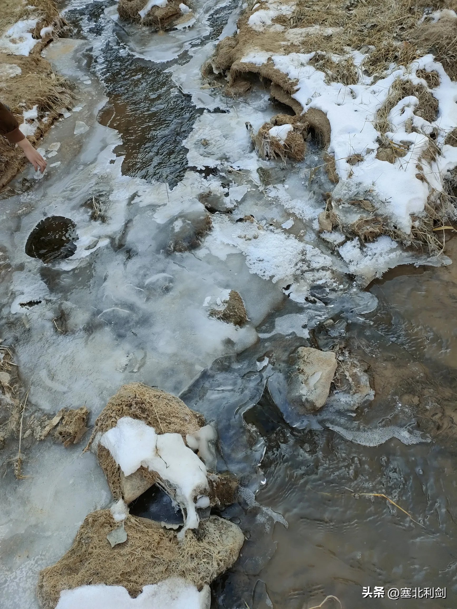 沿途看到,小河结的冰比往年少,有不少地方的流水还没结冰。可能与暖冬和2025年下雨多河水大有关。